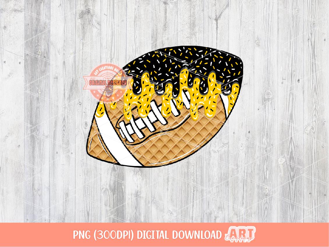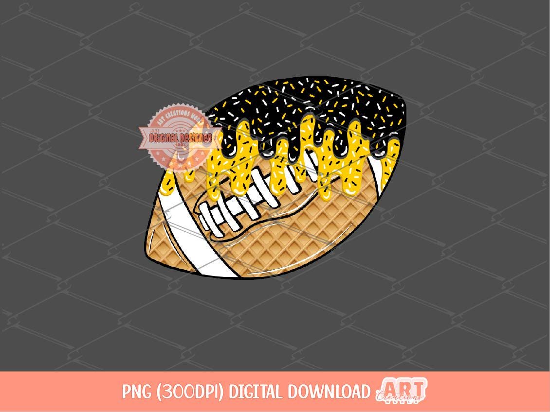 Instant Download Original Designer Black Yellow Gold Drip Football Ball PNG, Sweet Drippy Sprinkles Ice Cream Waffle Cone Sport ball Clipart Png file for Sublimation dtf Shirt Design Digital Download