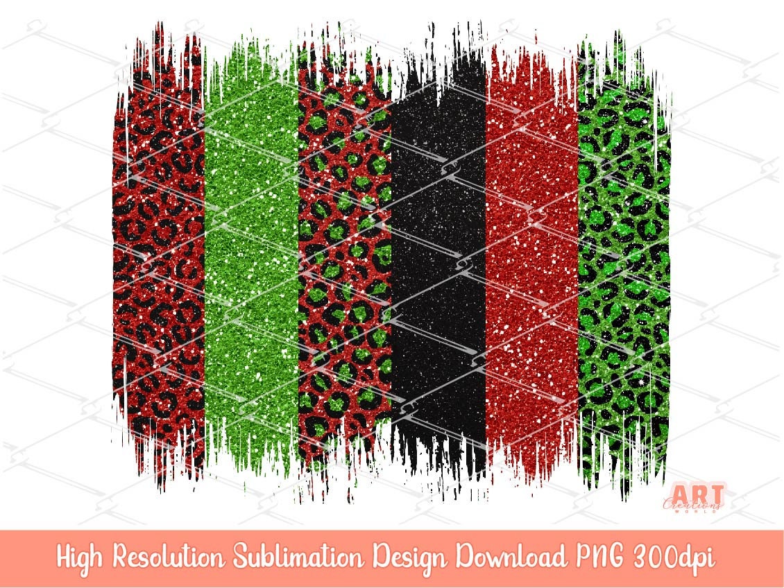 Christmas Brush Strokes Background PNG Sublimation | Glitter Leopard black , Red and Green brush stroke PNG | Merry Christmas 2022 PNG