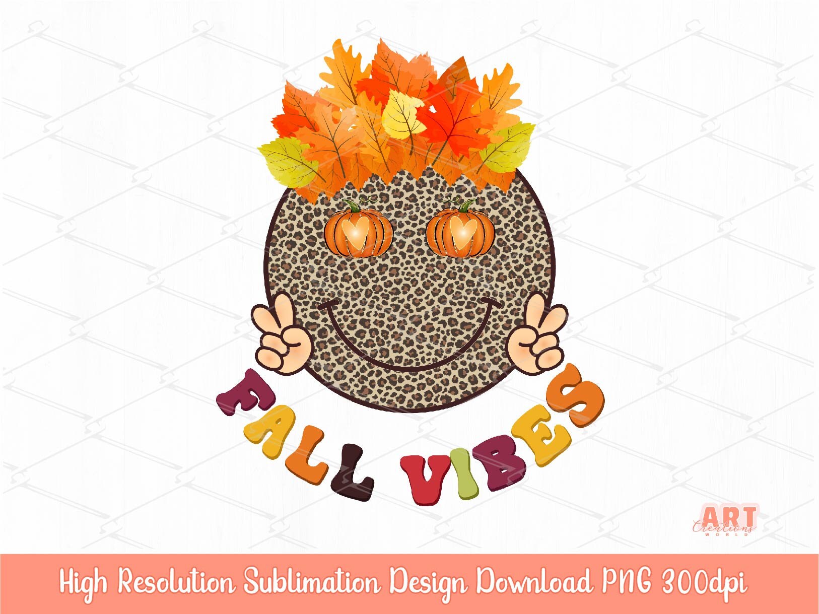 Fall Vibes Retro Smiley Face PNG for Sublimation | Autumn Sublimation Designs | Love Fall Y'all | Pumpkin Vibes | Leopard Pumpkin Thankful