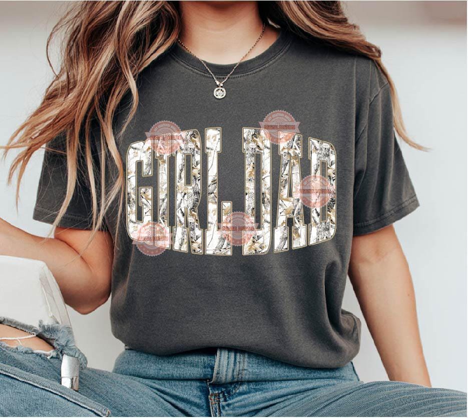 Girl Dad Gray Forest Camo PNG, Realistic Camouflage Tree Sublimation Shirt Design (Digital Download)