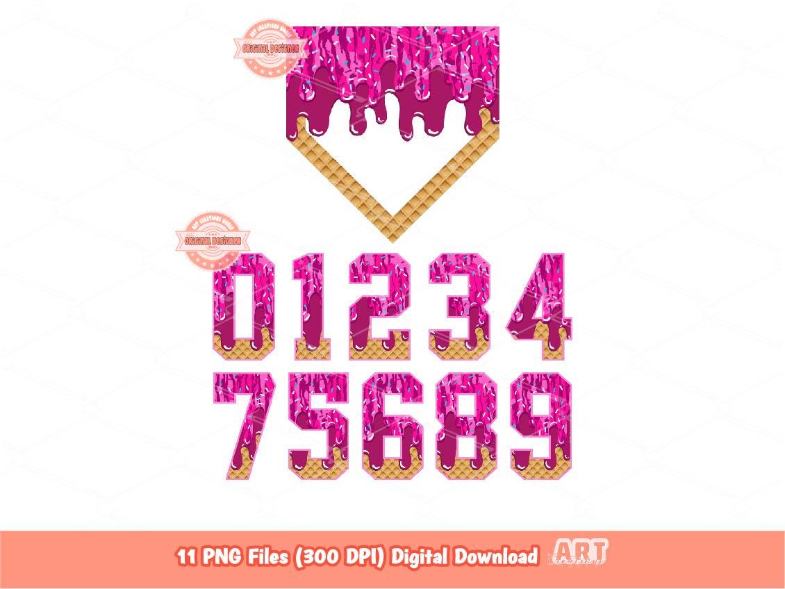 Instant Download Original Designer Pink Bottomland Camo Sprinkle Drip Numbers and Home Plate PNG Bundle, Sweet Baseball ice cream Dripping Clipart Png for Sublimation, Dtf Digital Download