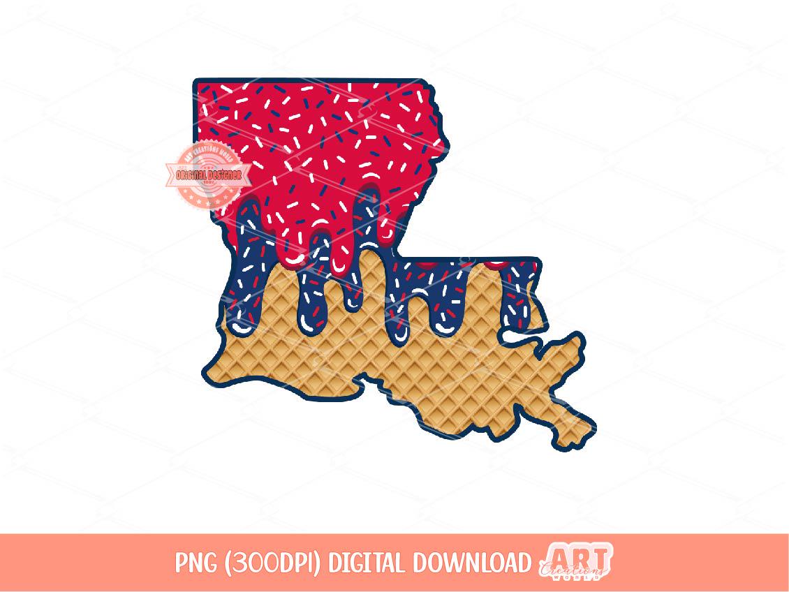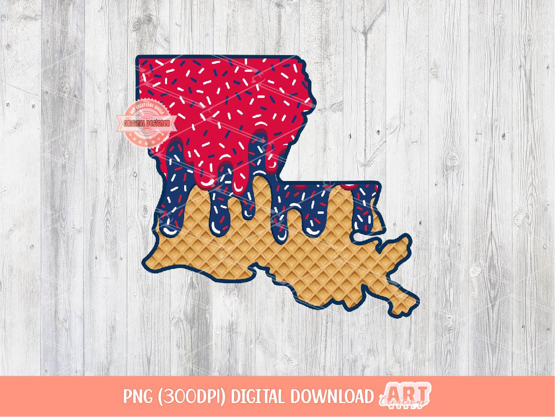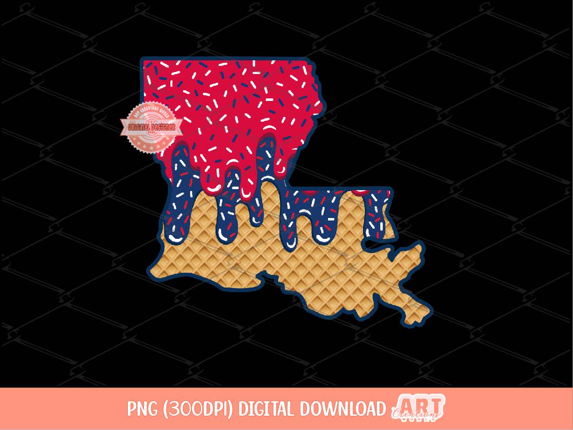 Instant Download Original Designer Red Navy Blue Sprinkle Drip Louisiana PNG, Custom Drippy Ice Cream US State Waffle Cone Png for Sublimation & dtf Shirt Design Digital Download