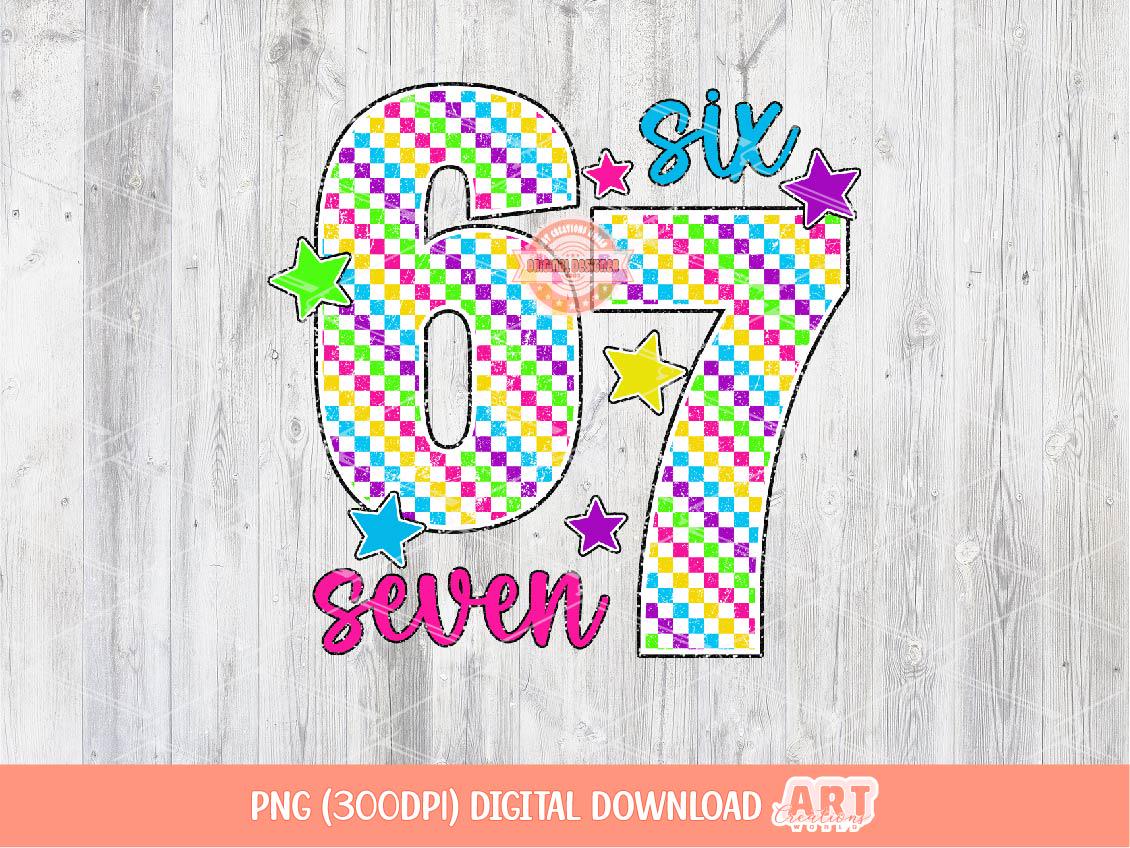 Instant Download Original Designer Six Seven PNG, Funny Viral Phrase Meme 6 7 Bright Checkered Colorful Png for Sublimation & dtf Trendy Shirt Design Digital Download.