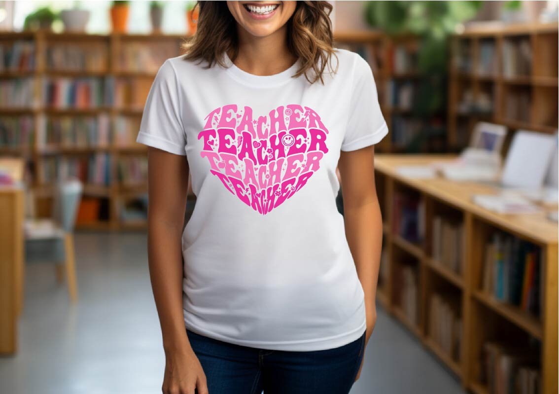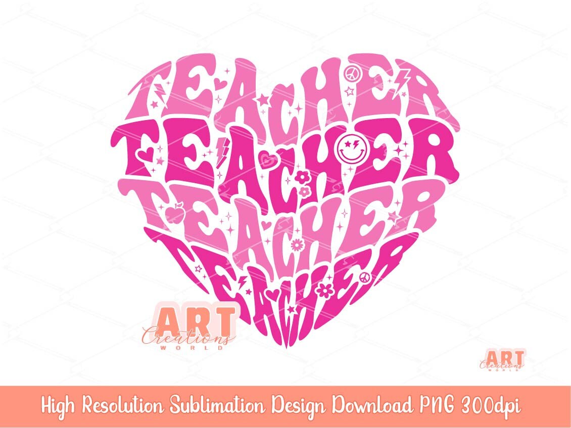 Instant Download Original Teacher Pink Heart PNG Sublimation Design