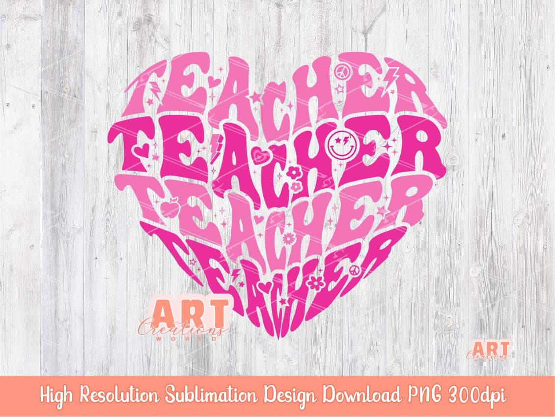Teacher Pink Heart PNG Sublimation, Custom Retro groovy Layered Text hearts shirt design, love my Teacher, Cute Teacher Life Design download