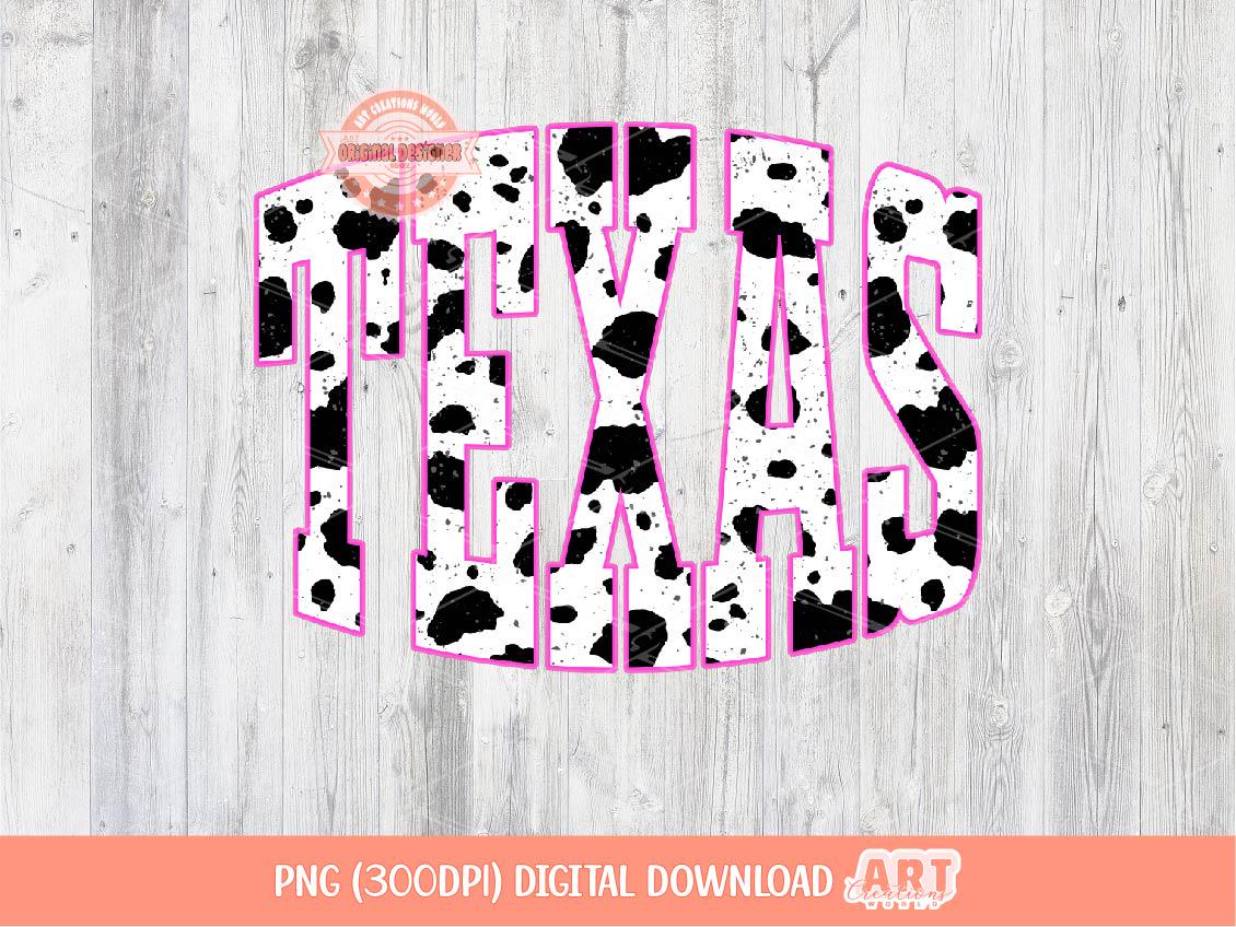 Instant Download Original Designer Texas Cow Print PNG, Retro Distressed Cowhide TX State with Pink Outline Png for Sublimation & dtf Trendy Western Shirt Design Digital Download.