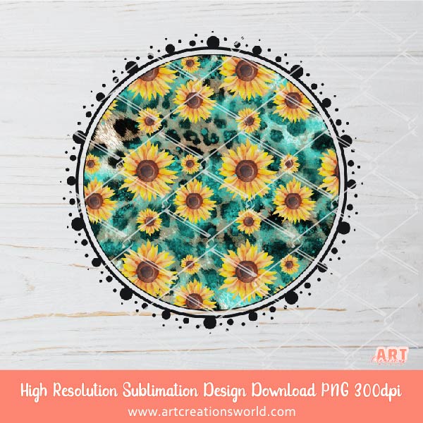 Turquoise Western Circle Background PNG Sublimation Design - 2 Sunflower and Turquoise Leopard Backgrounds