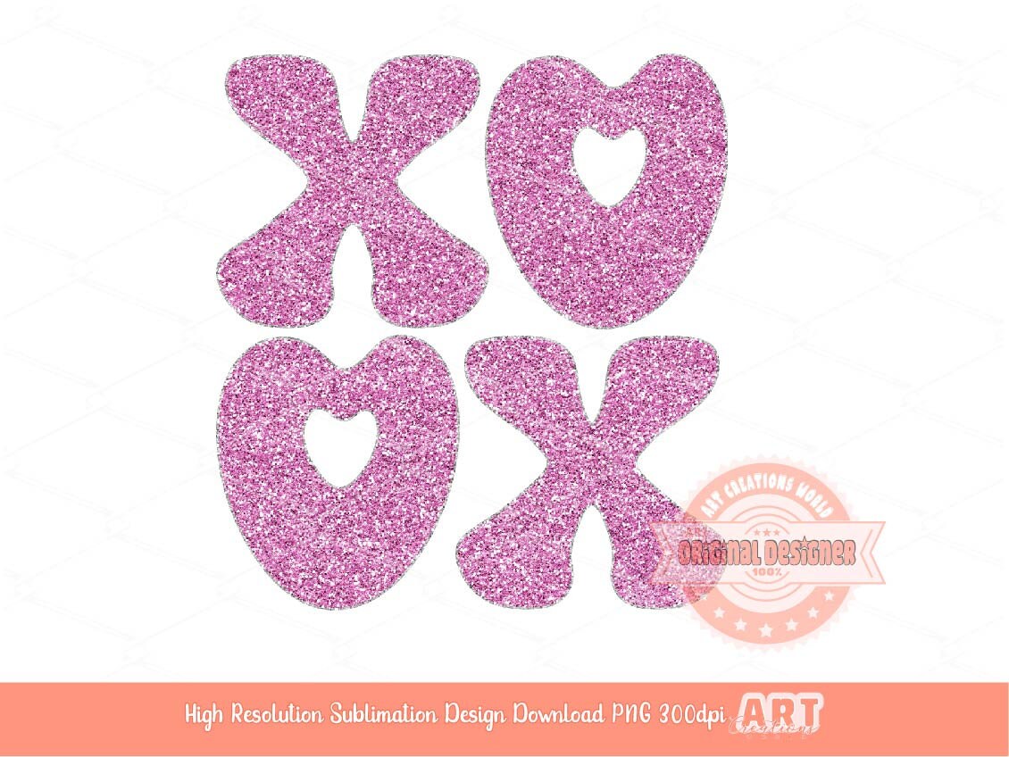 Instant Download Original Designer Xoxo Pink Glitter PNG, Original Glam sparkle Light Pink Heart Love Valentines Day Png Sublimation & DTF Print Valentine T shirt Design Digital Download
